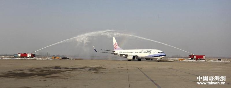 2013年12月31日,威海與臺灣空中直航班機開通。(圖片來源:威海市臺港澳辦)