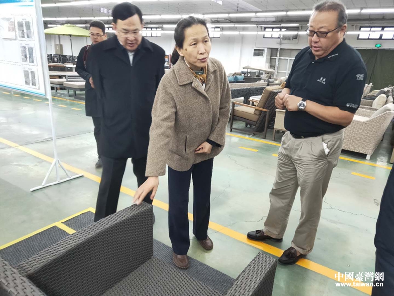 山東省臺港澳辦“三進”活動走進青島萬匯家具有限公司。(圖片來源:山東省臺港澳辦)