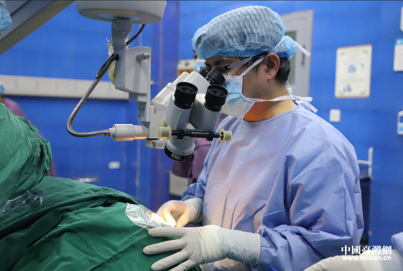 臺灣愛盲協(xié)會專家為白內(nèi)障患者做復(fù)明手術(shù)。(圖片來源:瀘州市臺辦)