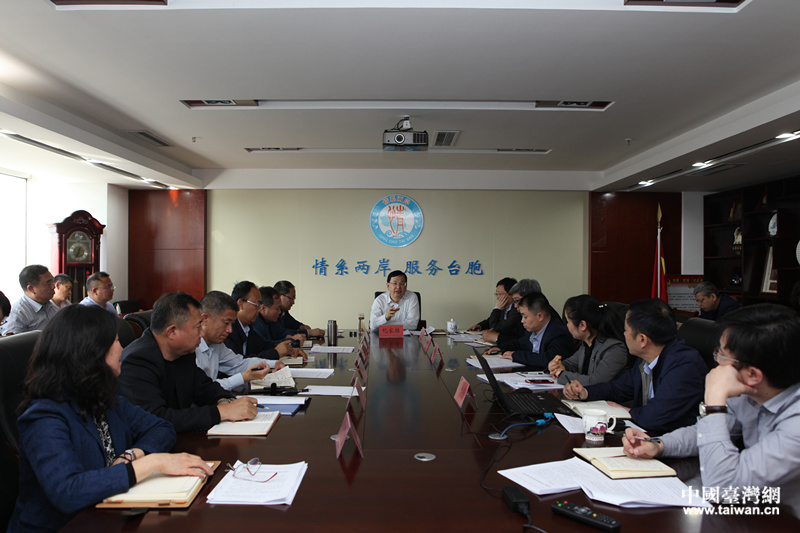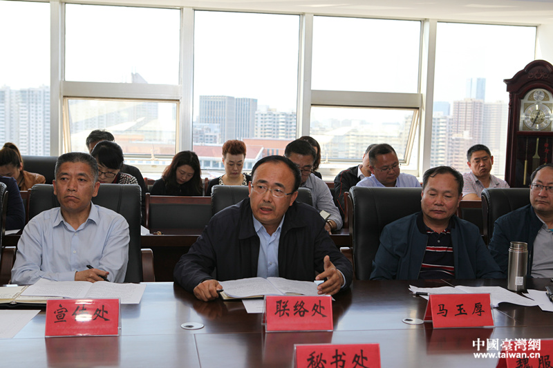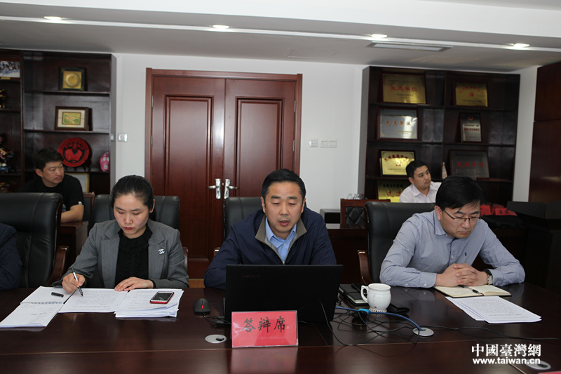 青島市臺港澳辦“臺港澳產(chǎn)業(yè)園建設(shè)攻勢”作戰(zhàn)方案答辯會,紀(jì)家棟主持會議并講話。(圖片來源:青島市臺港澳辦)