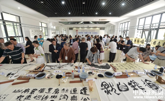 兩岸書畫家丹青溢彩、翰墨飄香,書寫盛世華章。(圖片來源:四川省臺辦)