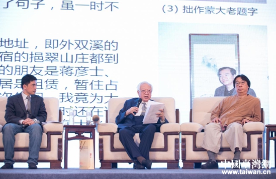 歐豪年教授(右二)緬懷他與張大千的忘年之交。(圖片來源:四川省臺辦)