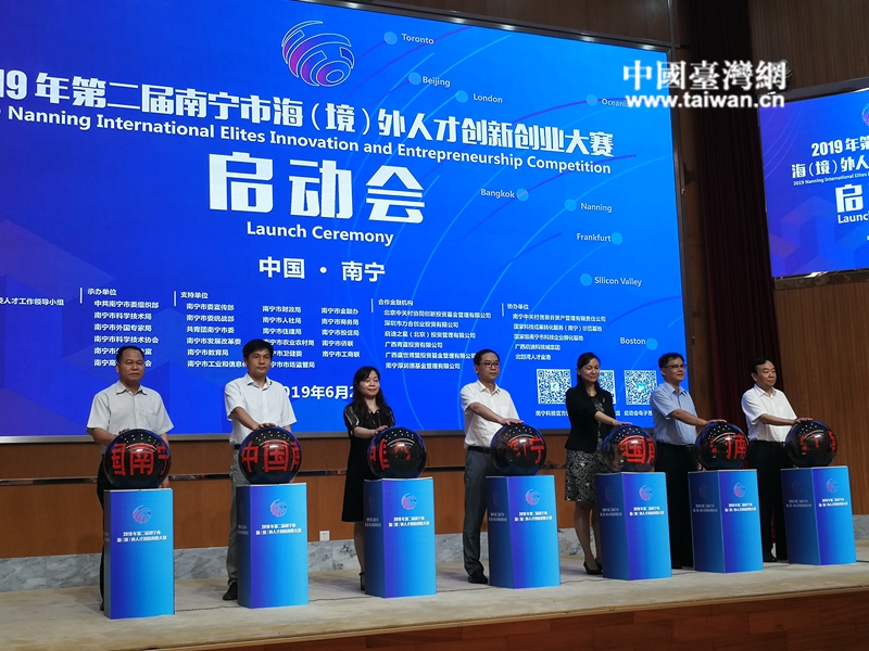 中國臺(tái)灣網(wǎng)6月28日南寧訊 6月26日,2019年第二屆南寧市海(境)外人才創(chuàng)新創(chuàng)業(yè)大賽在廣西南寧·中關(guān)村創(chuàng)新示范基地啟動(dòng),廣西科技廳,南寧市委組織部、科技局、科協(xié)、外事辦、高新區(qū)管委會(huì)相關(guān)負(fù)責(zé)人出席,按下啟動(dòng)球?yàn)閰①愡x手點(diǎn)亮征程。