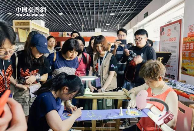 國家級非遺傳承人任本榮先生工作室觀摩漢繡技藝。(圖片來源:武漢市臺辦)