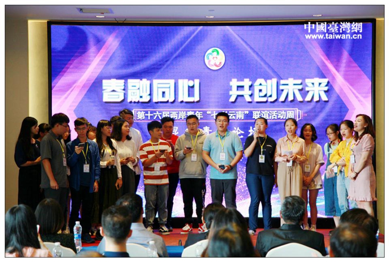 青創論壇上,昆明學生的一曲《彩云之南》,唱出了云南優美的自然風光與對此次活動久久難忘的回憶,臺灣學生演唱的《干杯》,表達了要為此行結下的友誼干杯的美好祝愿。兩岸學生共同合唱《龍的傳人》,則傳遞出了大家對兩岸一家親的深切認同。(中國臺灣網、昆明市臺聯聯合報道)