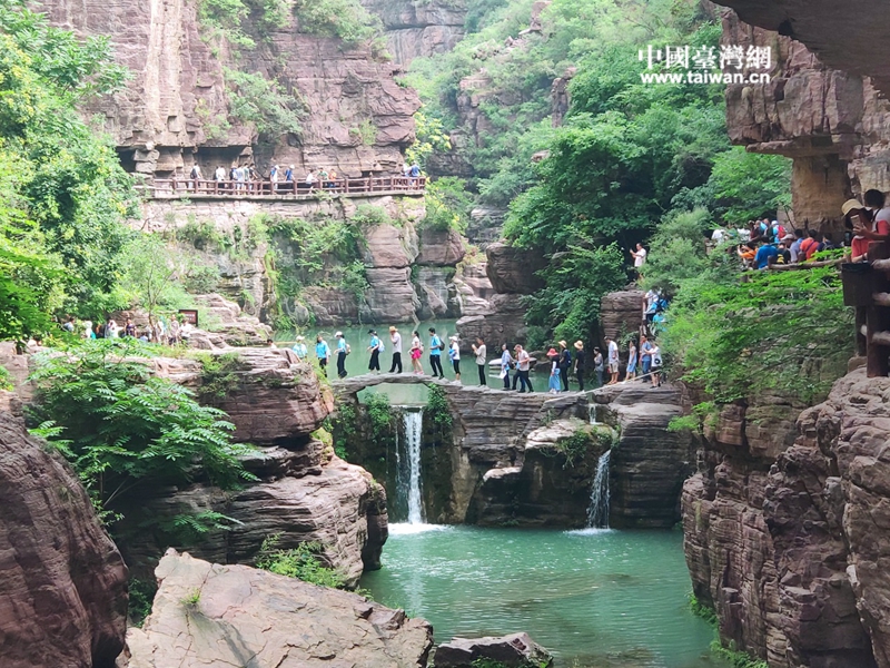 研習(xí)營在焦作的第一站是云臺山。據(jù)工作人員介紹,焦作云臺山地質(zhì)公園和臺灣野柳地質(zhì)公園已經(jīng)于7月19日正式締結(jié)為“姐妹公園”,使得營員們對云臺山又多了一份親切。作為全球首批地質(zhì)公園,云臺山秀美的自然風(fēng)光深深地吸引了研習(xí)營營員們。營員王裕源是第一次來到大陸,他激動地說,眼前的祖國大陸與印象中的完全不一樣,給他帶來了一個又一個驚喜。昨天的殷墟讓他看到了中華文化的博大精深;今天的云臺山讓他看到了祖國山河的秀麗多姿,讓人難忘。他不時將山中美景用手機(jī)分享給臺灣的朋友和同學(xué)們,共享自己的興奮之情。