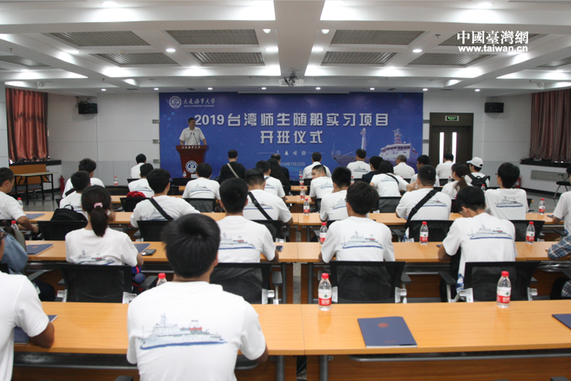 7月22日,2019年臺灣師生隨“育鯤”輪實習項目開班儀式在大連海事大學舉行(圖片來源:大連市臺辦)