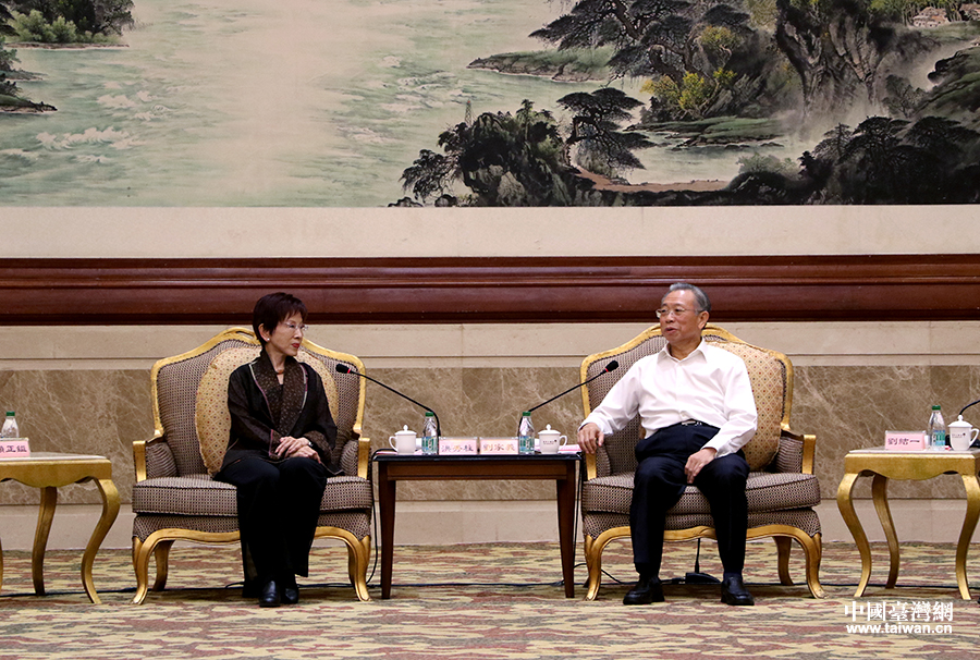 8月31日,山東省委書記劉家義在濰坊會見了由中國國民黨前主席、臺灣中華青雁和平教育基金會董事長洪秀柱率領的前來參加第25屆魯臺經貿洽談會的臺灣嘉賓代表。(中國臺灣網 普燕 攝)