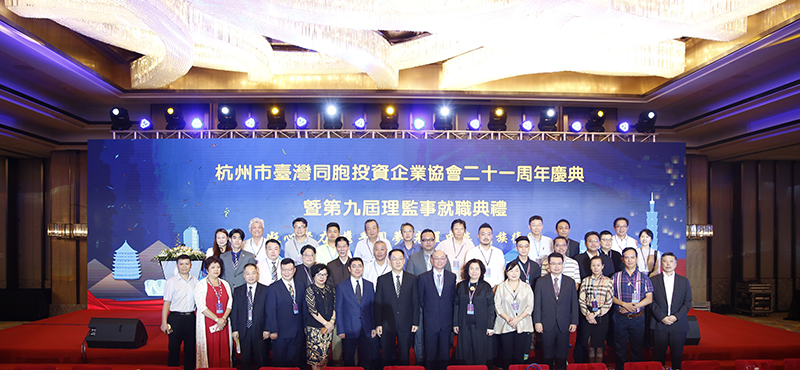 第九屆杭州市臺灣同胞投資企業(yè)協(xié)會理監(jiān)事就職合影。(來源:杭州市臺辦)