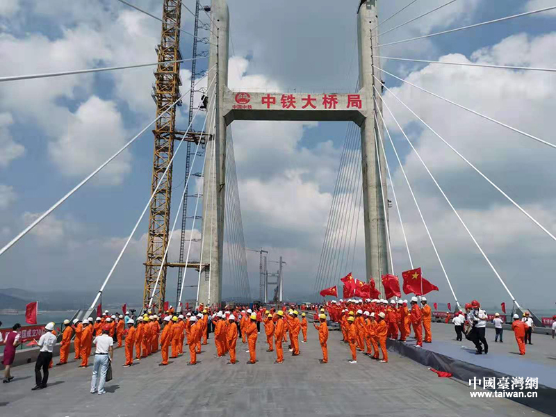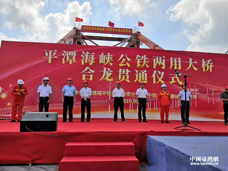 平潭海峽公鐵兩用大橋合龍貫通儀式。(福建省臺港澳辦供圖)