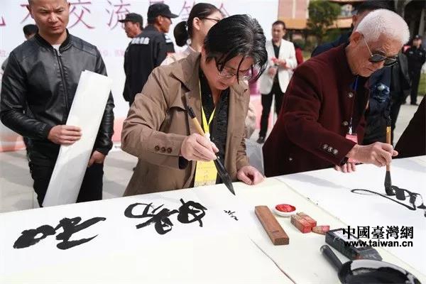 開幕式當天,來自臺灣、福建的知名書畫藝術家和固始當地部分知名書畫家還參加了“故里尋根 翰墨寄情”書法交流筆會。兩岸書畫家們情緒高漲,圍繞根親文化,談書論墨,以書畫寄情懷、以翰墨頌盛世,每一件作品都展現出了高超的藝術水準,體現出昂揚的時代精神,也充滿了人們對幸福生活的憧憬。