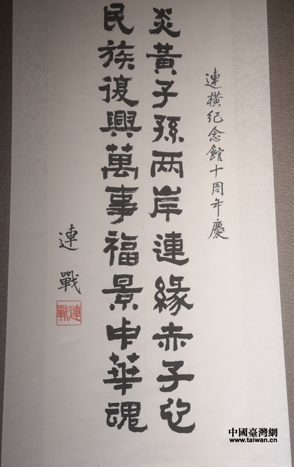連戰(zhàn)在連橫紀念館十周年慶上的題辭(圖片來源:杭州市臺辦)
