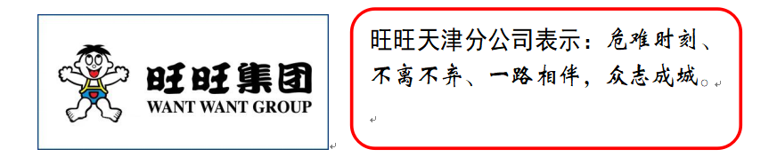 隨即,旺旺集團(tuán)天津分公司負(fù)責(zé)人29日晚聯(lián)系市臺企協(xié)會,表達(dá)捐助旺旺產(chǎn)品的意愿,以當(dāng)?shù)乜箵粢咔闉橹,響?yīng)當(dāng)?shù)蒯t(yī)院抗擊指揮部需求,全力優(yōu)先支援。