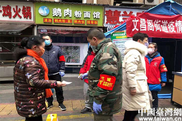 中國(guó)臺(tái)灣網(wǎng)2月18日訊 根據(jù)貴陽市委、云巖區(qū)委應(yīng)對(duì)新型冠狀病毒肺炎疫情工作領(lǐng)導(dǎo)小組統(tǒng)一部署。近日,貴陽市臺(tái)辦、貴陽市老年大學(xué)、貴陽市節(jié)約用水辦公室、貴陽市第二中學(xué)的4名黨員志愿者來到文昌閣辦事處,建立起一個(gè)抗疫一線臨時(shí)黨支部,赴轄區(qū)開展疫情封控點(diǎn)值守、抗疫防護(hù)宣傳、車輛排查、體溫檢測(cè)等工作。