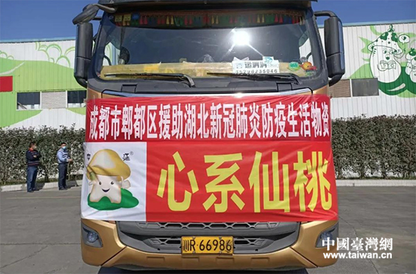 中國臺灣網(wǎng)2月26日訊 2月16日,裝滿兩大卡車的愛心物資從成都郫都區(qū)戰(zhàn)旗村出發(fā),馳援四川省對口支援的湖北省仙桃市,支援當?shù)貞?zhàn)“疫”。