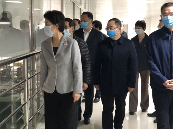 烏蘭一行走進生產車間,實地察看了公司的辦公區域和乳制品生產線,向企業負責人詳細了解了在疫情防控方面采取的措施和做法,仔細詢問企業復工復產后的生產經營狀況,以及員工的工作、生活情況,并現場協調解決有關困難問題。