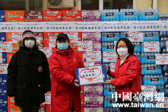在京臺企向社區捐贈物資。 (中國臺灣網 發)
