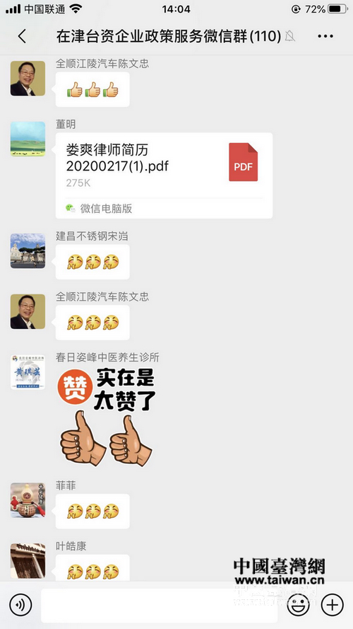 天津市臺協會長羅文德會長說,這次市臺辦推出的“臺企e碼通”為企業復工復產、了解相關政策提供了便利,受到企業一致好評。下一步市臺協要繼續與在津臺資企業的保持密切聯系,及時對企業反映的復工復產中出現的困難和問題,向有關單位進行反饋,幫助做好協調服務工作。