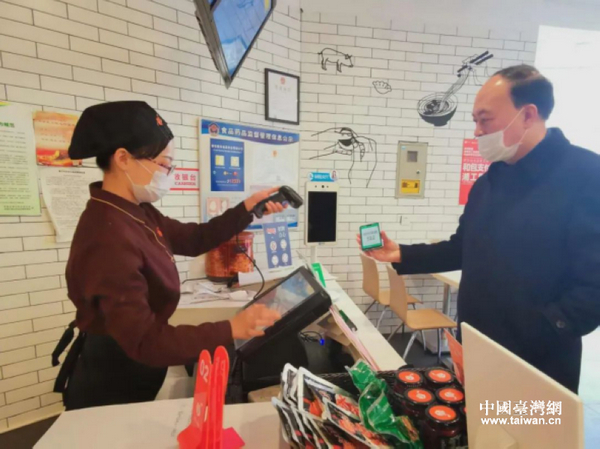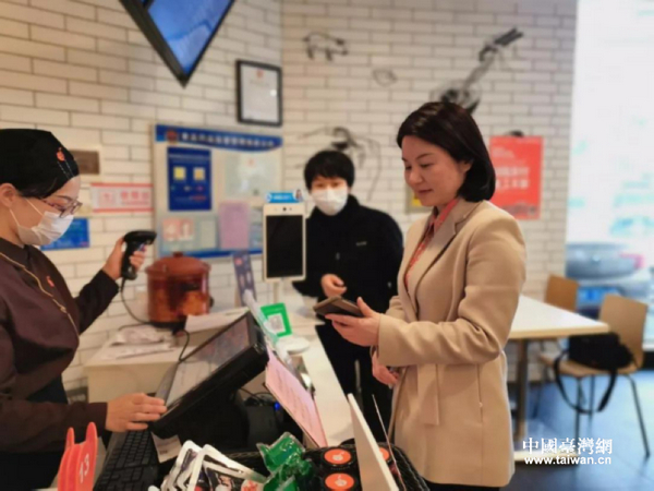 中國臺灣網4月3日訊 4月2日12時,位于長沙市長島路的臺資企業長沙羅莎食品有限公司旗下的羅莎臺北豆漿餐飲店迎來了10多位特殊的客人。在接受體溫檢查后,他們各自點單并通過微信掃碼使用消費券付款。