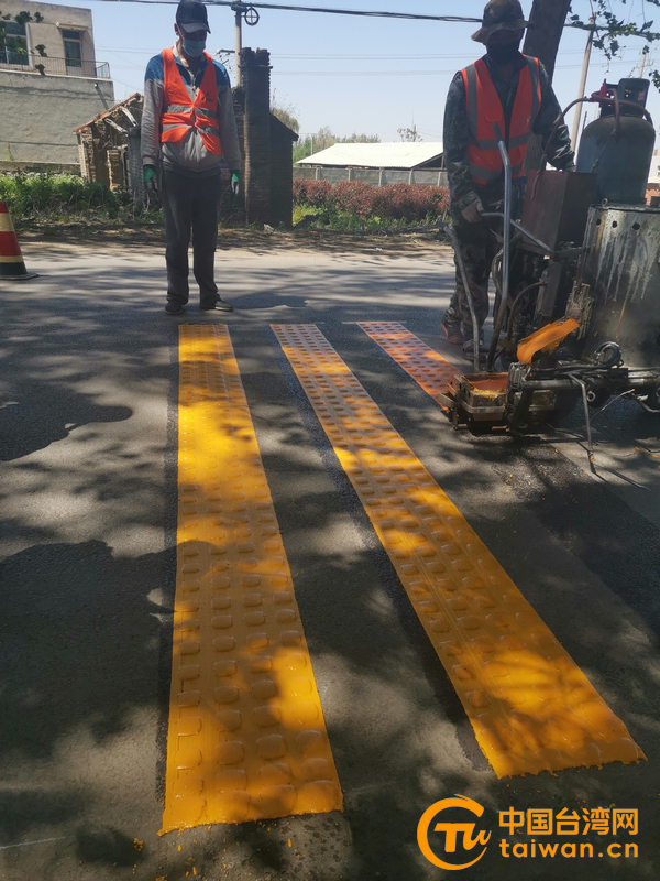 鋪設(shè)道路減速帶(圖片來源:遼陽市臺(tái)辦)