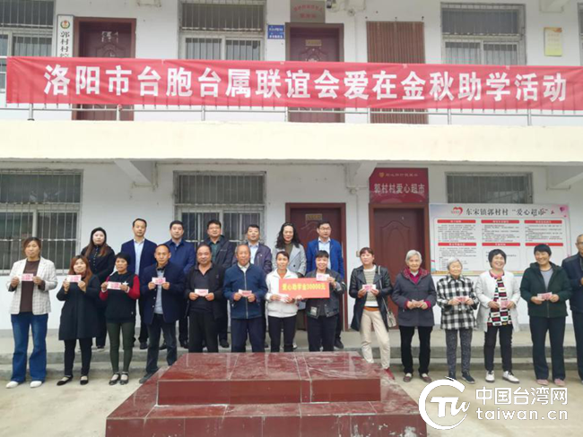 中國臺灣網10月14日訊 10月10日下午,洛陽市臺胞臺屬聯誼會會長周群一行,到洛寧縣東宋鎮郭村開展“愛在金秋助學”活動,將全市臺胞臺屬捐贈的3萬元助學金,送到該村14名貧困學子手中。洛陽市委統戰部副部長朱曉偉參加活動。