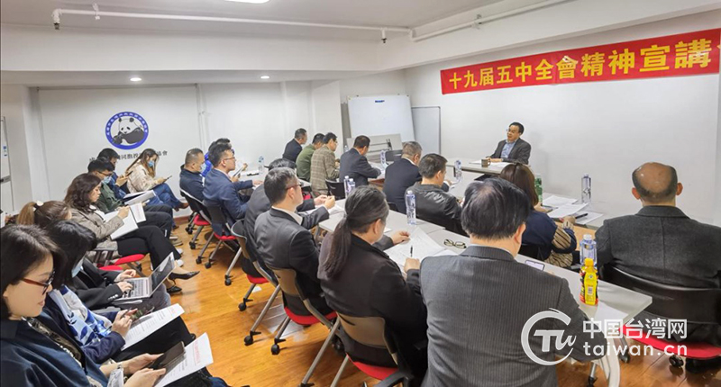 中國臺灣網11月19日成都訊 11月16日,成都臺協會會議室,30多位在川臺商圍坐一堂,認真聆聽四川省臺辦副主任張軍對十九屆五中全會精神的宣講,一邊用筆勾畫著自己關心的重點。通過宣講會,大家進一步了解了“十四五規劃”和2035年遠景目標,紛紛表示,感覺大陸發展又迎來了新機遇,要抓住新機遇和已經出臺的利好政策,實現更大更好的發展。