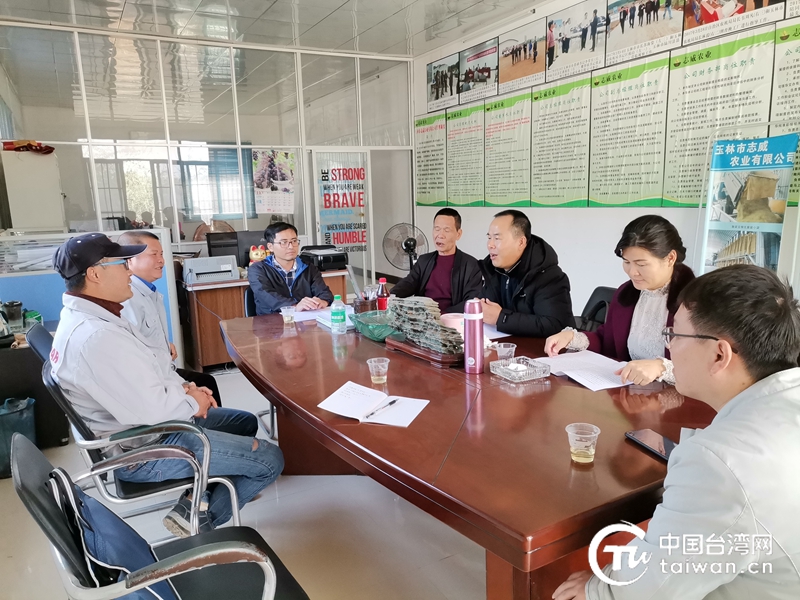 陸川縣臺辦到臺企調研并宣傳黨的十九屆五中全會精神。(廣西陸川縣臺辦供圖)