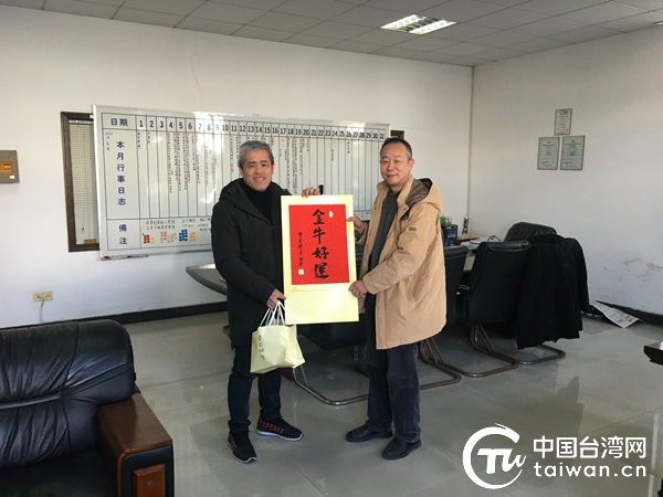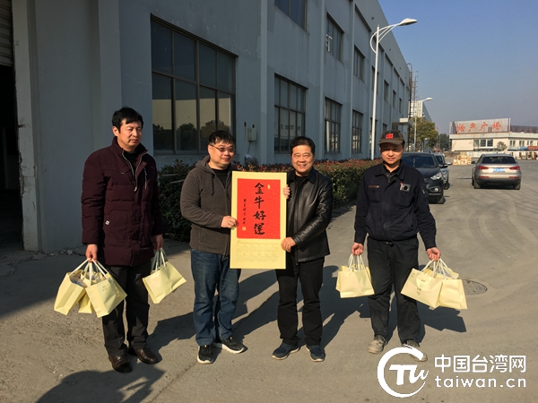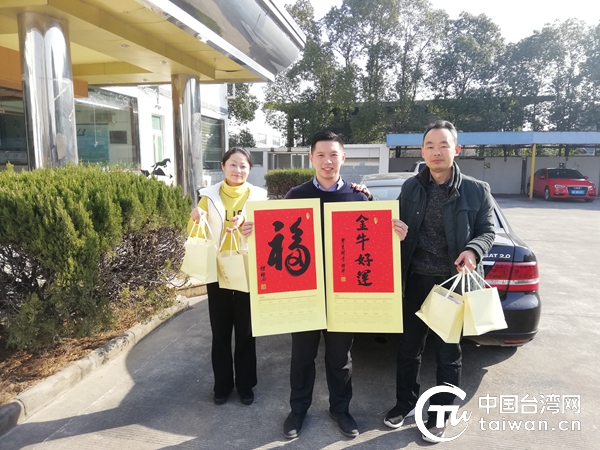 湖州市臺辦副主任王國平及吳興區臺辦為臺商送臘八粥。(中國臺灣網發)