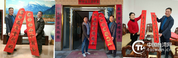 洪世杰主任一行還送上自己書寫的春聯(lián),并轉(zhuǎn)達(dá)南安市委市政府的關(guān)懷和新春祝福。(福建省南安市臺港澳辦通訊員林應(yīng)權(quán))