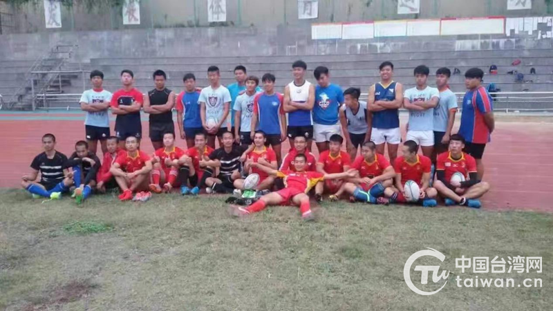 沈陽市176中學與臺灣長榮大學在廈門交流橄欖球經驗、切磋球技。(圖片來源:沈陽市臺辦)