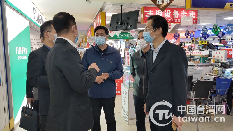 沈陽(yáng)市臺(tái)辦主任與百腦匯公司領(lǐng)導(dǎo)在商場(chǎng)了解情況(圖片來(lái)源:沈陽(yáng)市臺(tái)辦)