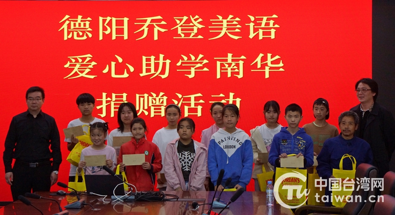 中國(guó)臺(tái)灣網(wǎng)4月27日訊 4月24日,四川德陽(yáng)市臺(tái)資企業(yè)協(xié)會(huì)副會(huì)長(zhǎng)、喬登美語(yǔ)事業(yè)機(jī)構(gòu)張嚴(yán)文先生前往德陽(yáng)市旌陽(yáng)區(qū)和新鎮(zhèn)長(zhǎng)壽村、中江縣南華鎮(zhèn)和永太鎮(zhèn),向結(jié)對(duì)的43名中小學(xué)生捐贈(zèng)助學(xué)金、文具用品共計(jì)2萬(wàn)余元。張嚴(yán)文勉勵(lì)孩子們,“要記住去年疫情對(duì)國(guó)家和人民帶來(lái)的磨難,將其轉(zhuǎn)化為更加刻苦學(xué)習(xí)的動(dòng)力,用知識(shí)的力量走出困境、感恩家庭、回饋社會(huì)、報(bào)效國(guó)家。”