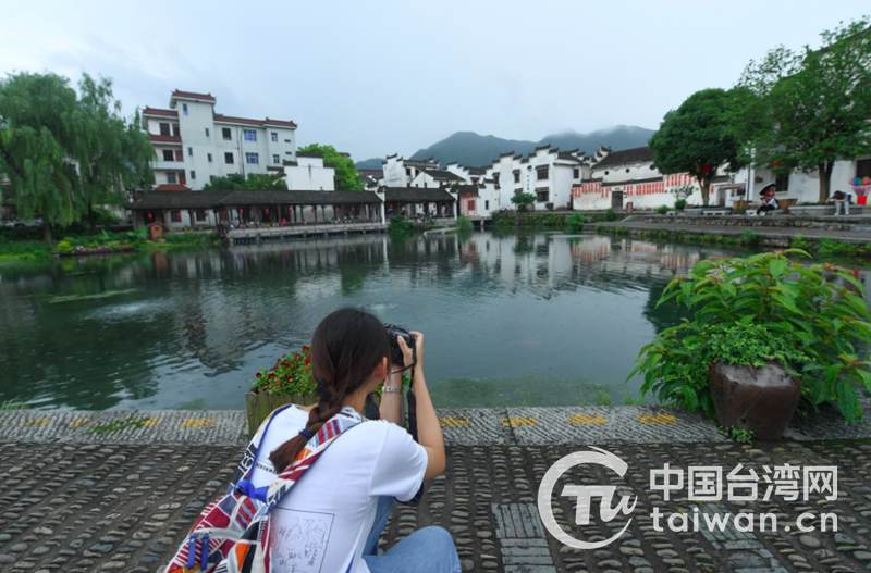 臺灣青年在富陽龍門古鎮進行攝影創作(圖片來源:浙江省臺辦)