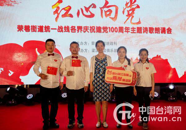 中國臺灣網6月17日消息 近日,由無錫濱湖區臺辦、榮巷街道聯合舉辦的“紅心向黨”榮巷街道統一戰線各界慶祝建黨100周年主題詩歌朗誦會在榮巷街道黨群活動中心舉行。來自街道的臺青臺屬、僑胞僑眷、民主黨派人士、科研院所黨外知識分子、新的社會階層人士等統一戰線各領域成員代表及居民代表共計百余人歡聚一堂,畫出最美同心圓。