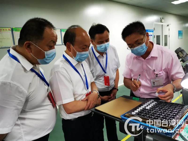 湖北省臺辦副主任邢軍志實地走訪宜都龍昌光學(圖片來源:湖北省臺辦)