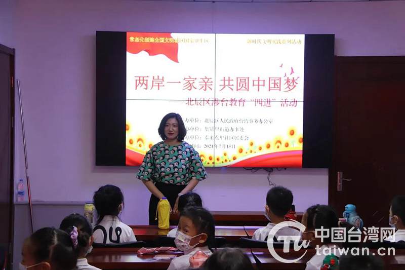 中國臺灣網7月22日訊 近日,天津市北辰區臺辦與集賢里街道辦事處在泰來東里社區新時代文明實踐站聯合舉辦了“兩岸一家親 共圓中國夢”青少年涉臺教育活動。