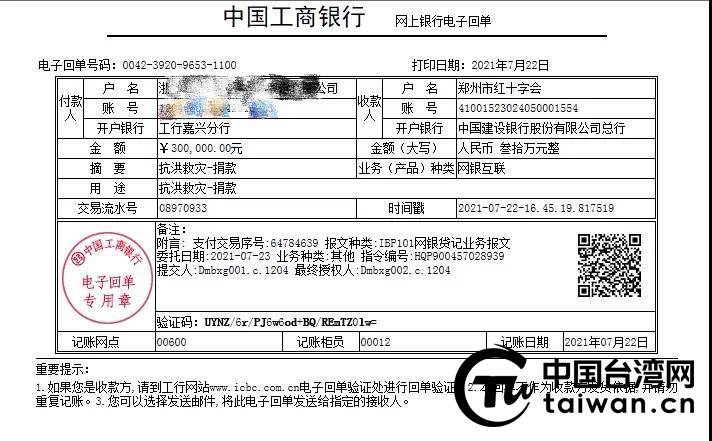 中國(guó)臺(tái)灣網(wǎng)7月23日訊 一方有難,八方支援。河南暴雨洪水災(zāi)情牽動(dòng)著嘉興臺(tái)胞的心,近日,第一筆救災(zāi)資金30萬(wàn)元已經(jīng)馳援鄭州。