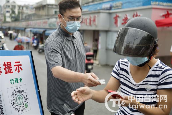 中國臺灣網8月13日訊 “請您戴好口罩、出示健康碼和行程碼,謝謝!”“請不要擁擠,有序排隊,保持一米距離”……近日,一口溫軟的臺灣腔普通話回響在江蘇無錫榮巷市場和龍山路幾個重要卡口,這是潘柏銓、楊貞威等臺青以志愿者的身份投身基層社區疫情防控工作。