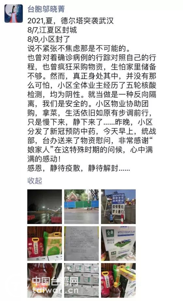鄔女士的朋友圈(圖片來源:武漢市臺辦)