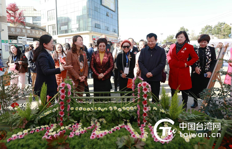 云南省委臺辦副主任崔冰成(右三)等與會嘉賓出席活動并參觀花植設計作品展(中國臺灣網 發)