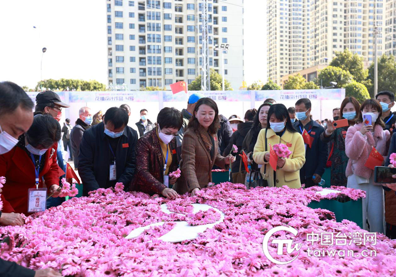 兩岸同胞用鮮花共繪中國地圖(中國臺灣網 發)