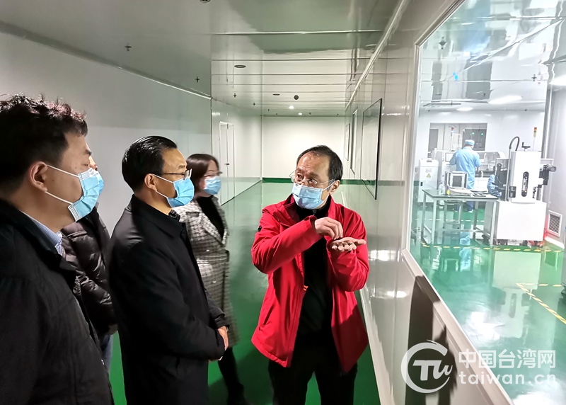 張軍(左二)調研宜賓昌鑫科技有限公司(圖片來源:四川省臺辦)
