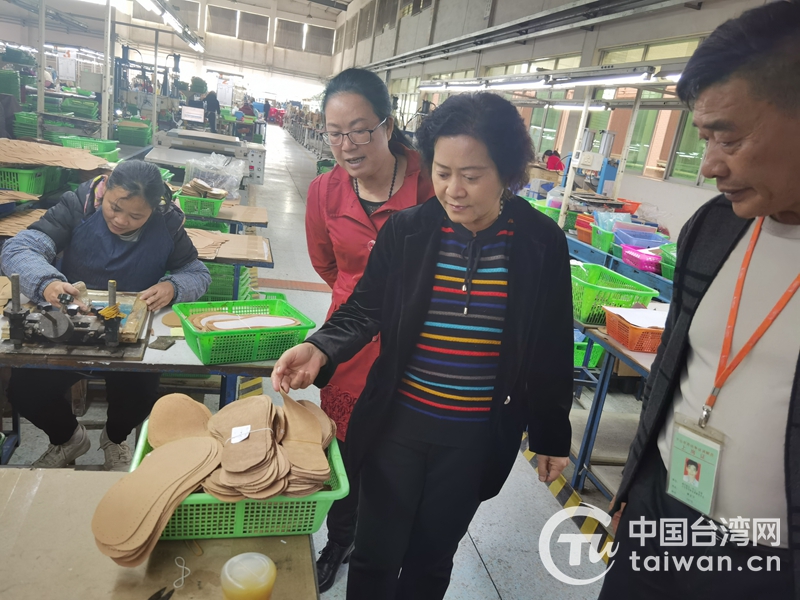 廣西貴港市臺辦主任覃宏在威漢鞋業(yè)有限公司調(diào)研。(圖片來源:廣西貴港市臺辦)