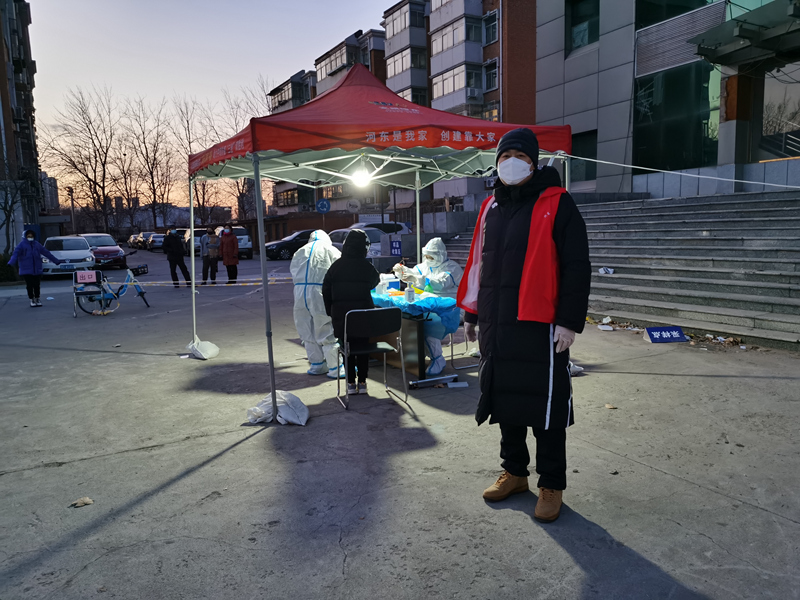 此次戰“疫”打響后,劉晟同志作為一名志愿者,10日下沉社區,協助做好居民核酸檢驗工作。他深有感觸地說,看到社區工作者自始至終奔波在第一線,堅守崗位,值得所有人尊重,能與他們肩并肩攜手作戰,即使天寒地凍,也能感到一股暖意。哪有什么歲月靜好,不過有人替你負重前行。感謝所有社區工作者的辛苦付出。希望天津盡快戰勝疫情。加油,天津!