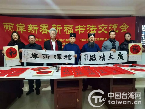 中國臺灣網1月25日訊 近日,“兩岸新春祈福書法交流會”在上海市浦東新區太清宮和宜蘭礁溪明德道院同時舉辦。上海浦東道教書畫院的優秀作品與宜蘭礁溪明德道院優秀作品相互交流展出。