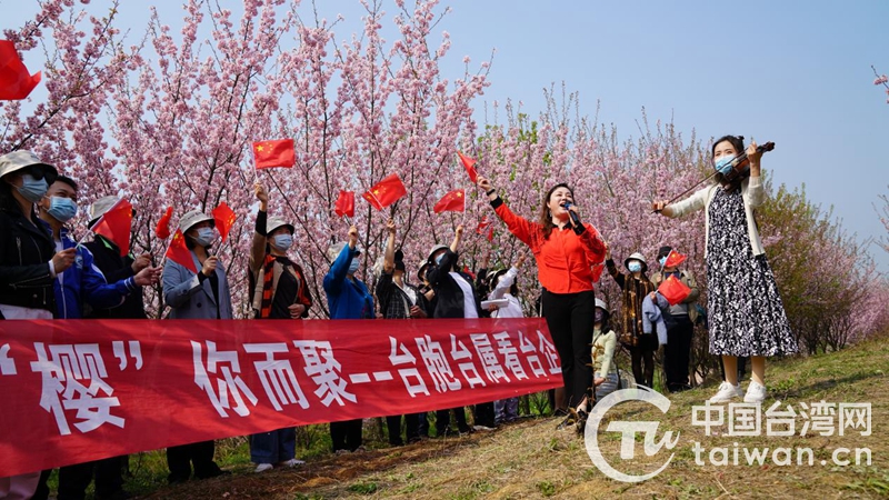 活動現場,漫山遍野的櫻樹層疊,美不勝收的櫻花綻放枝頭,金黃色的油菜花點綴其間,構成一幅美麗的山水田園畫。臺胞臺屬走進櫻花林中,在賞花拍照同時,還表演了文藝節目,歡聲笑語充滿整個櫻花林。