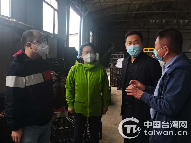 大潤發東北區采購總監楊臨(左一)考察西豐縣食用菌生產企業(圖片來源:鐵嶺市臺辦)