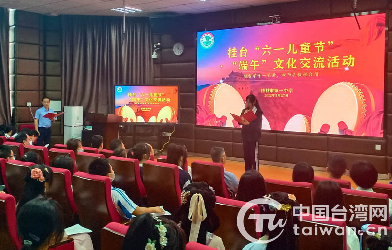 中國臺(tái)灣網(wǎng)5月31日訊 六一兒童節(jié)和端午節(jié)日近,廣西桂林市第一中學(xué)近日舉辦桂臺(tái)“六一兒童節(jié)”、“端午”文化交流活動(dòng),邀請?jiān)撔E_(tái)灣學(xué)生和部分外校臺(tái)灣學(xué)生及其家長,與當(dāng)?shù)貙W(xué)生代表歡聚一堂,共慶節(jié)日,其樂融融。