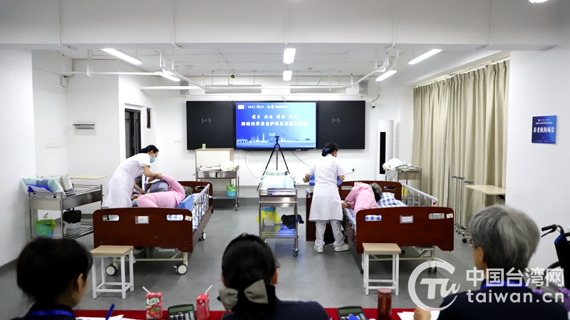 中國臺(tái)灣網(wǎng)7月27日訊 近日,2022浙江·臺(tái)灣周溫州專場(chǎng)系列活動(dòng)——兩岸養(yǎng)老護(hù)理員技能友誼賽,在浙江省首個(gè)“醫(yī)康養(yǎng)護(hù)教”五位一體康養(yǎng)綜合體——浙江東方職業(yè)技術(shù)學(xué)院金竹校區(qū)開賽,來自臺(tái)灣康芮嘉養(yǎng)、臺(tái)灣唯康為老等海峽兩岸的10支康復(fù)醫(yī)院、養(yǎng)老機(jī)構(gòu)、職業(yè)院校技能隊(duì)伍展開友誼交流,同場(chǎng)比武角逐!
