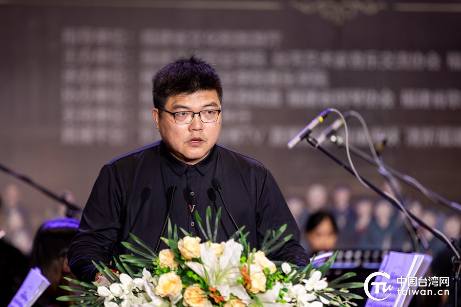 臺灣藝術家音樂交流協會秘書長、兩岸藝術青年聯合交響樂團首席樂手劉融致辭(中國臺灣網發)